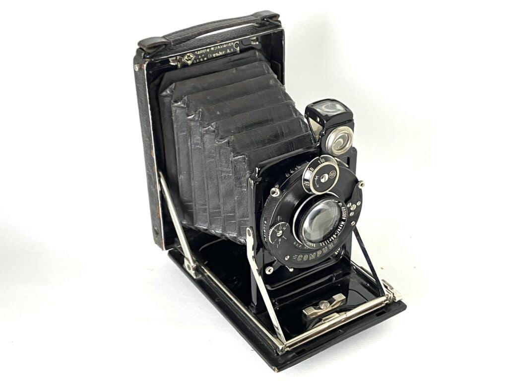 Diese äußerst flach zusammenklappbare, hochwertige Laufbodenkamera 6,5 x 9 cm für Platten oder Filmpacks der Kamerawerke Guthe & Thorsch von