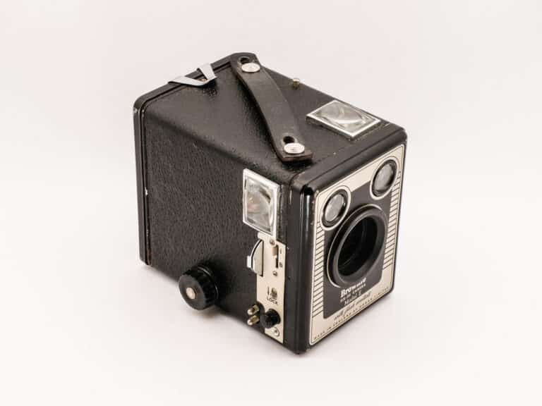 Boxkamera für Rollfilm 120 der Firma Vredeborch, Nordenham, produziert ab 1953. Vredeborch bot ein sehr umfangreiches Produktprogramm, hauptsächlich Boxkameras. Dieses
