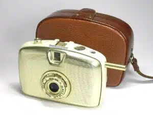 Ästhetisch und technisch innovative Sucherkamera für die ORWO-Schnelladekassette (für Aufnahmen im Halbformat 18 x 24 mm), hergestellt vom VEB Welta-Kamera-Werke Freital/Dresden (DDR) ab 1959. Objektiv: Meyer-Trioplan 1:3,5/30 mm, vergütet; manuelle Fokussierung. Durchsichtsucher. […]