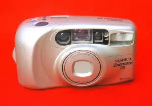 Kompaktkamera von Yashica für Kleinbildfilm 135, Negativformat 24 x 36 mm. Japan, ab 1994. Programmautomatik bei mittenbetonter Belichtungsmessung, Empfindlichkeitsbereich ISO 50 bis ISO 3.200, DX-Codierung. Infrarot-Autofocus, Fokus-Speicher-Funktion (Fokussieren auf außermittige Bildteile), Leuchtrahmensucher […]
