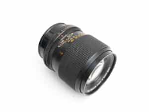Leichtes Konica-Teleobjektiv für Spiegelreflexkameras im Kleinbildformat, mit Bajonettanschluss; manuelle Fokussierung. Filtergewinde 55 mm. Im Museum mit dem originalen Objektivdeckel aus Leichtmetall.