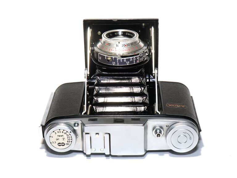Die seltene Kamera erreichte uns auf verschlungenen Pfaden durch eine Spende einer ehemaligen ADOX-Mitarbeiterin, die heute in Keutschach am See in Kärnten (Österreich) wohnt und in den ADOX-Fotowerken in Neu-Isenburg bei Frankfurt eine Industriekaufmannslehre absolviert hatte und dann dort im Einkauf tätig war. Als Betriebsangehörige konnte man Fotoapparate, Filme usw. günstig erwerben. Im digitalen Zeitalter hat die Kamera jetzt ausgedient.