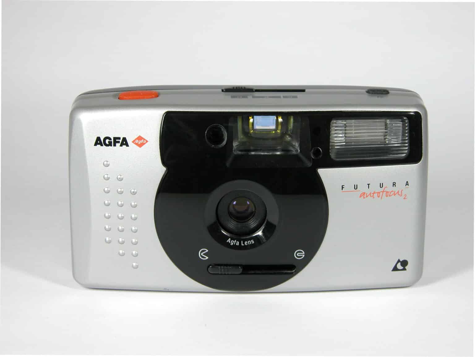 Einfache Sucherkamera, 1998, für APS-Film (Aufnahmeformat 16,7 x 30,2 mm). Autofokus, Programmautomatik (kürzeste Verschlusszeit: 1/250 Sekunde). Eingebauter Winder. Objektiv: Agfa Lens 1:4,5/24 mm, eingebauter E-Blitz.