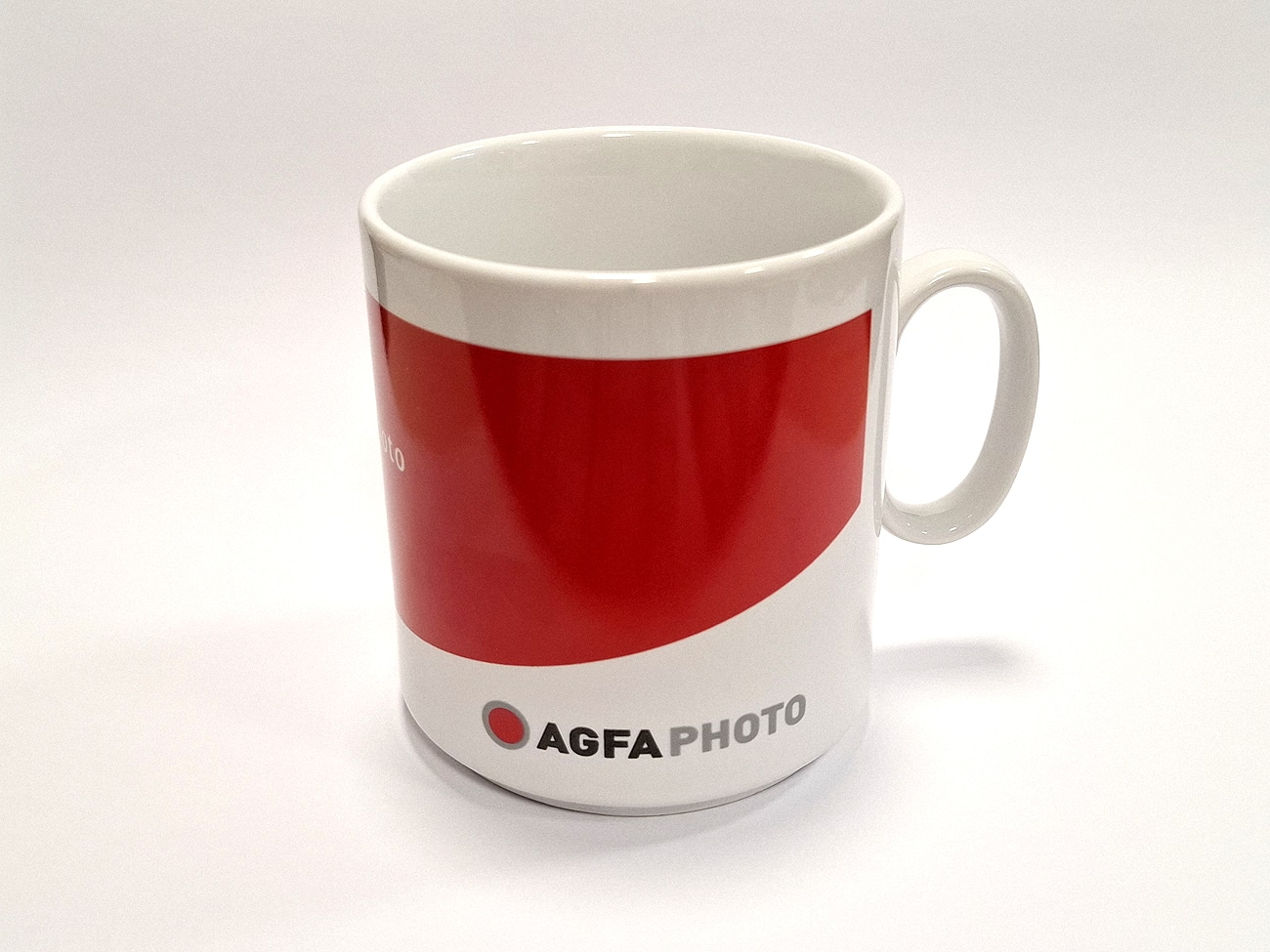 Photographica-Sammler interessieren sich in der Regel nicht nur für teure und seltene Gerätschaften, sondern auch für die kleinen Dinge des Alltags, die früher als Werbegeschenke oder Fanartikel im Umlauf waren. Besonders bei Agfa und ihren „Folgefirmen“ ist da die Palette riesengroß. Hier also eine Tasse (Durchmesser: 7,8, Höhe: 8,7 cm) mit dem Aufdruck „AgfaPhoto“. Die AgfaPhoto GmbH ist ein europäisches Fotounternehmen, das 2004 gegründet wurde, als Agfa-Gevaert seinen Geschäftsbereich Consumer Imaging verkaufte. Agfa ist ja seit vielen Jahrzehnten als Hersteller von verbraucherorientierten Fotoprodukten wie Filmen, Fotopapieren und Kameras bekannt.
