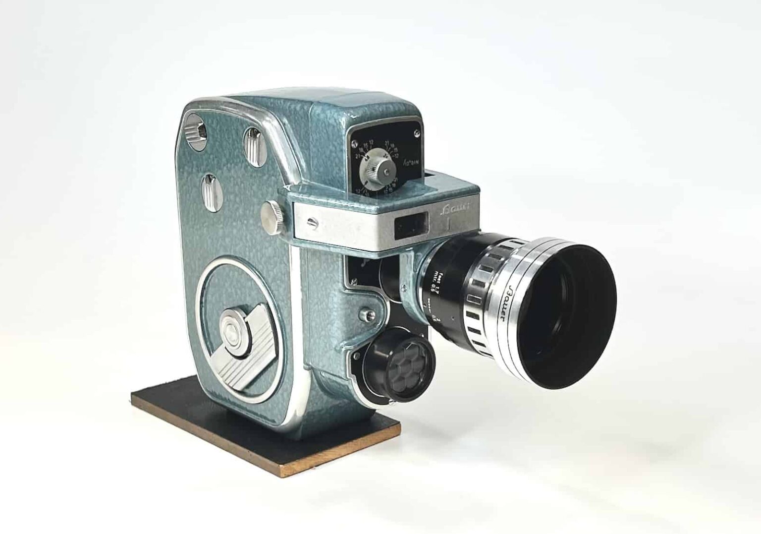 Auf der rechten Kameraseite sind folgende Bedienungselemente angeordnet: oben Filmzählwerk, Gangwähler, Wählscheibe für Laufgänge oder Einzelbildschaltung, unten der Aufzugschlüssel des Federwerks. Vorderseite, von oben nach unten: Einstellscheibe für Filmempfindlichkeit, Sucher, Aufnahmeobjektiv, Auslöser, Fenster des Belichtungsmessers.