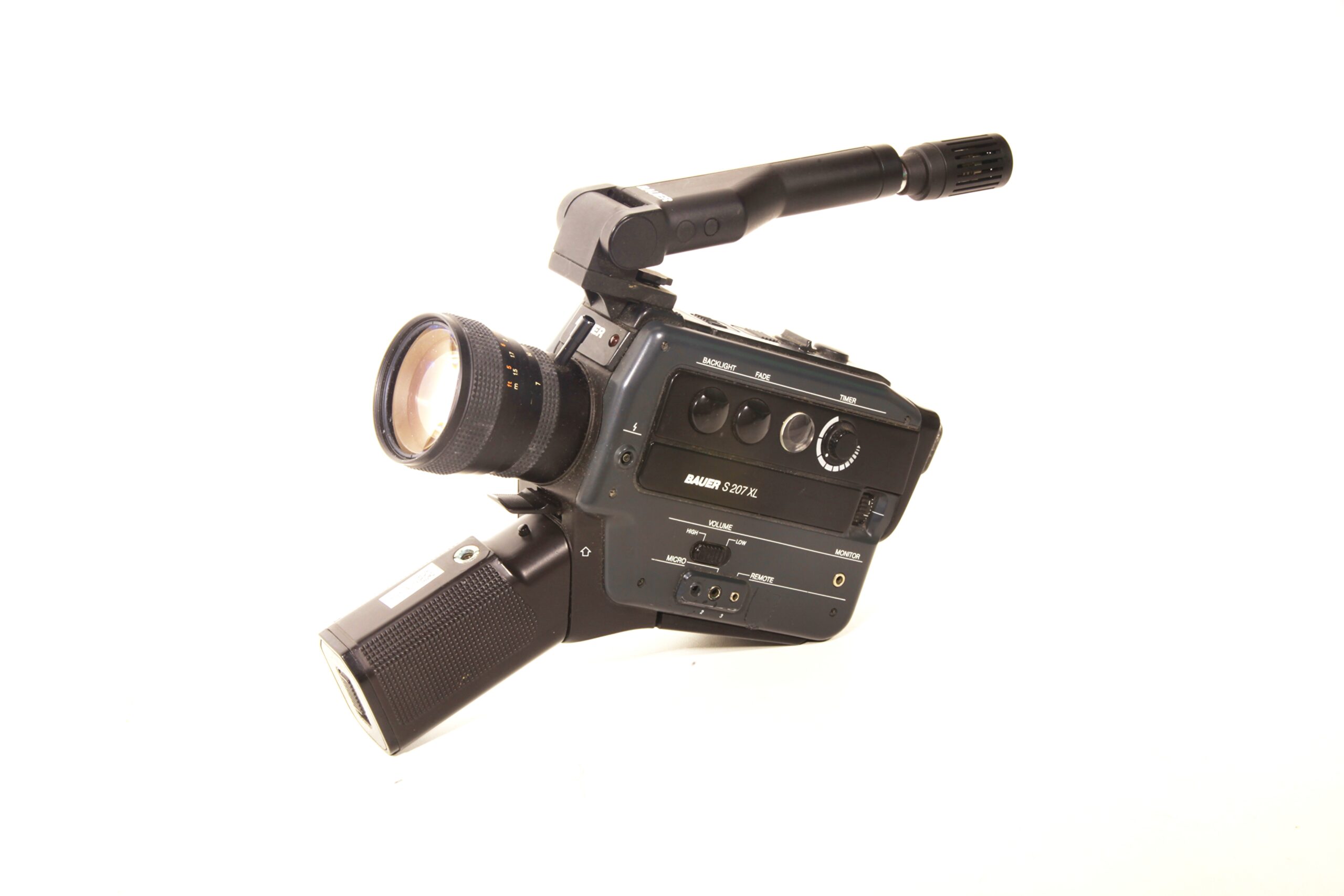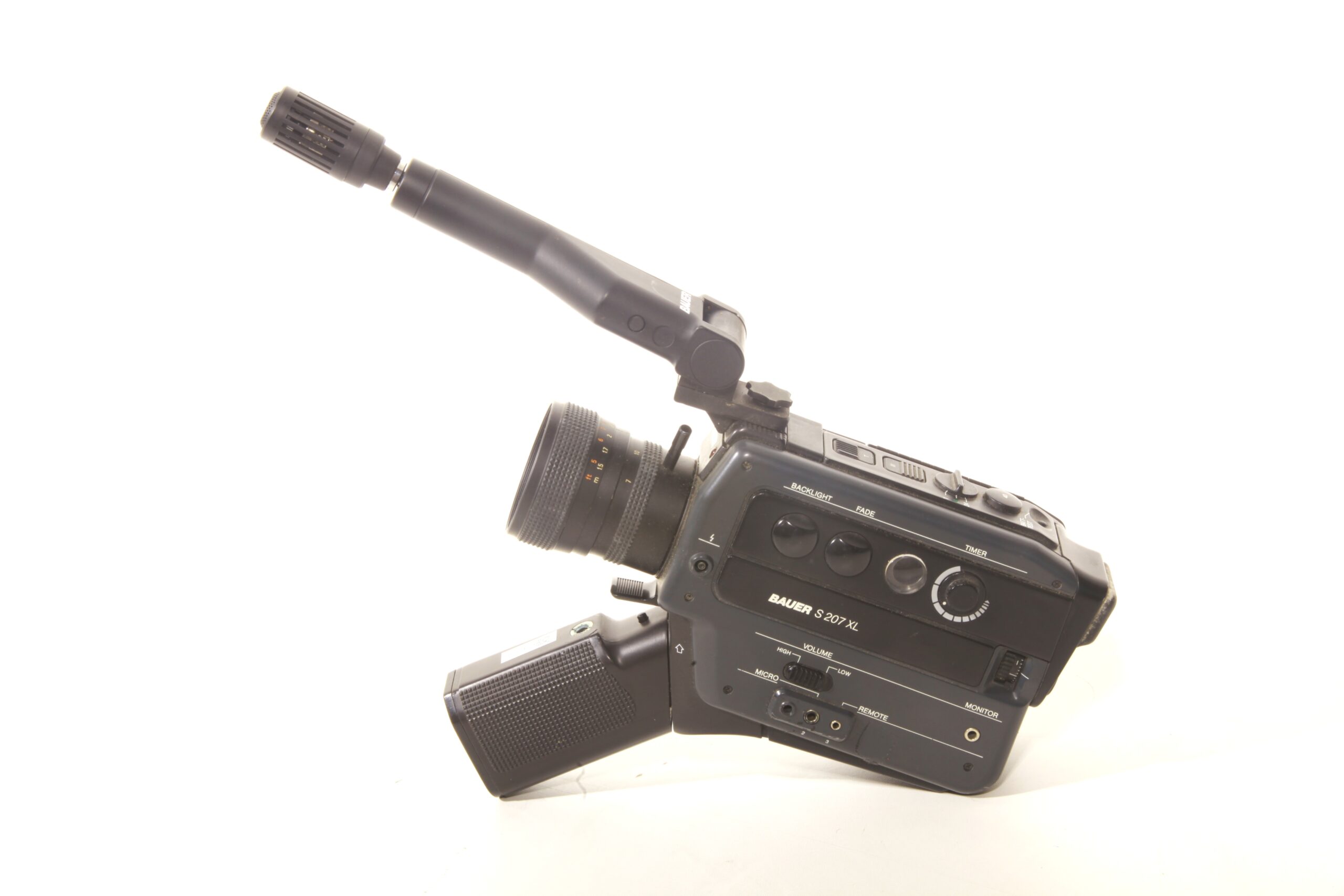 Schmalfilmkamera für Super-8-Kassetten (auch Tonfilm), gebaut von 1978 bis 1982 in Malaysia. Objektiv: Bauer Neovaron 1:1,2/7-45 mm; manuelle Fokussierung mit Schnittbildindikator; manuelle oder motorische Brennweitenverstellung, Reflexsucher. Elektrischer Filmtransport (Einzelbildschaltung sowie 18, 24 oder 40 Bilder pro Sekunde). TTL-Belichtungsmessung, Belichtungsautomatik, auch manuell einstellbar. Fernbedienung, Mikrofonanschluss, Monitor-Buchse, Gegenlichttaste, beiklappbarer Handgriff (mit Batteriefach, 6 x AA-Batterien 1,5 Volt). Hier ist zusätzlich ein schwenkbares Mikofonstativ montiert.