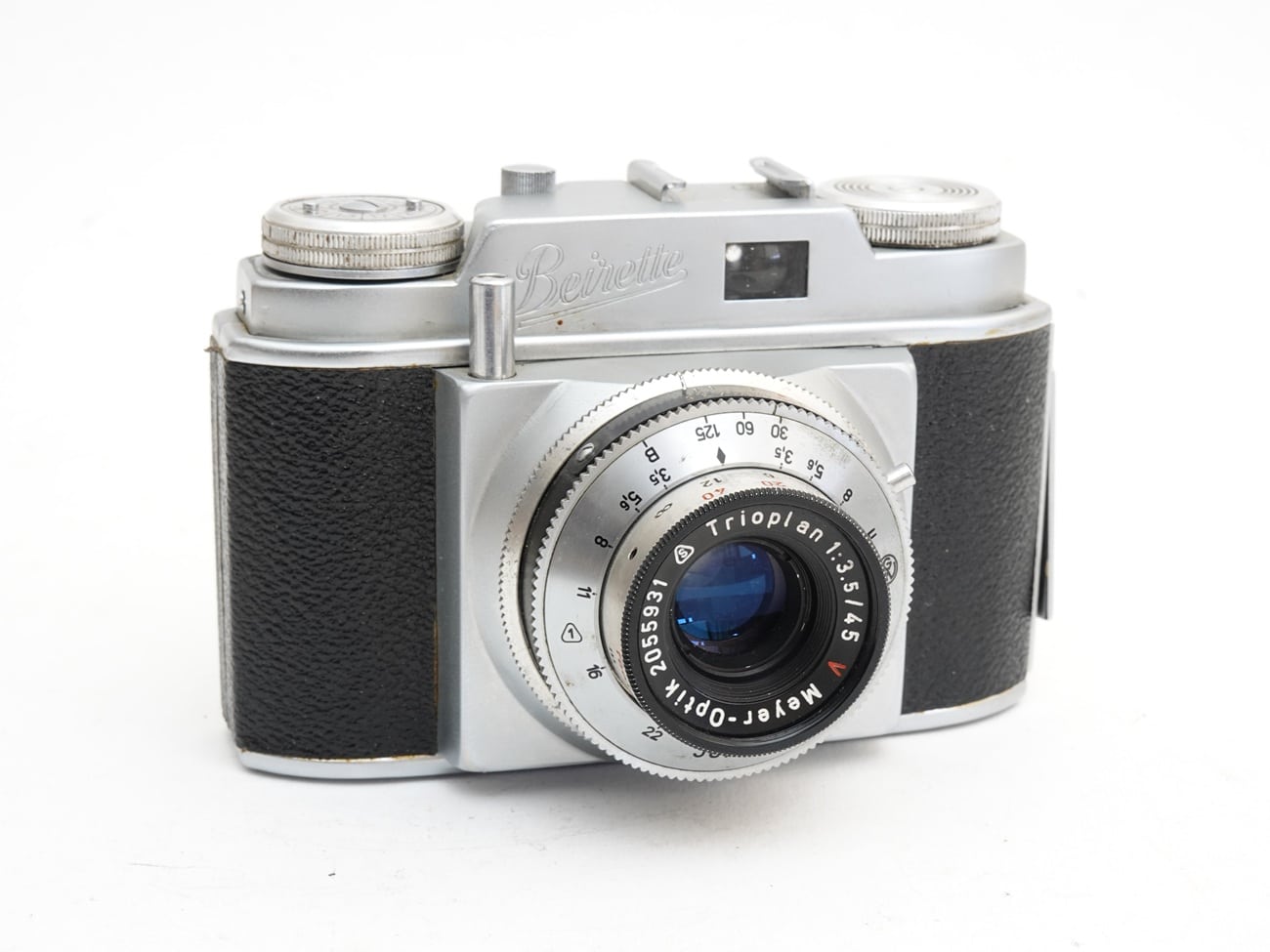 Sucherkamera für den Kleinbildfilm 135 (Aufnahmeformat 24 x 36 mm), hergestellt in der DDR ab 1958. Es handelt sich um die erste nach 1945 hergestellte Kleinbildkamera von Beier. Objektiv: Meyer-Optik Trioplan 1:3,5/45 mm, vergütet, Seriennummer 2055931; manuelle Fokussierung. Fernrohrsucher. Mechanischer Zentralverschluss Junior II (B, 1/30 bis 1/125 Sekunde); manuelle Belichtungssteuerung. Filmmerkscheibe, Anschlüsse für Blitzsynchronkabel, Drahtauslöser und Stativ (1/4″). Besondere Ausstattungsmerkmale: Schnellspannhebel und manueller Parallaxenausgleich.