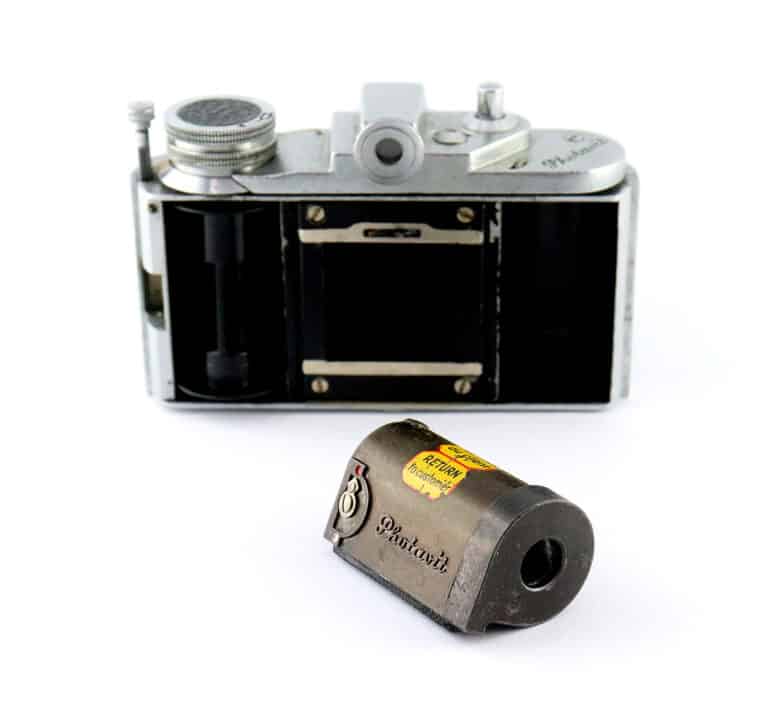 Miniaturisierte Sucherkamera (ab 1947) für den Kleinbildfilm 135 (Negativformat 24 x 24 mm) in speziellen Photavit-Patronen. Hier mit dem Objektiv: Schneider-Kreuznach Radionar 1:3,5/37,5 mm, Seriennummer 1955954. Naheinstellgrenze: 0,75 Meter. Newton-/Fernrohrsucher, Bildzählwerk, Gehäuseauslöser; kein Blitzanschluss, kein Selbstauslöser, kein Drahtauslöseranschluss. Verschluss: Compur-Rapid (Deckel) mit B, 1 bis 1/500 Sekunde. Belichtungstabelle aus der Rückseite.