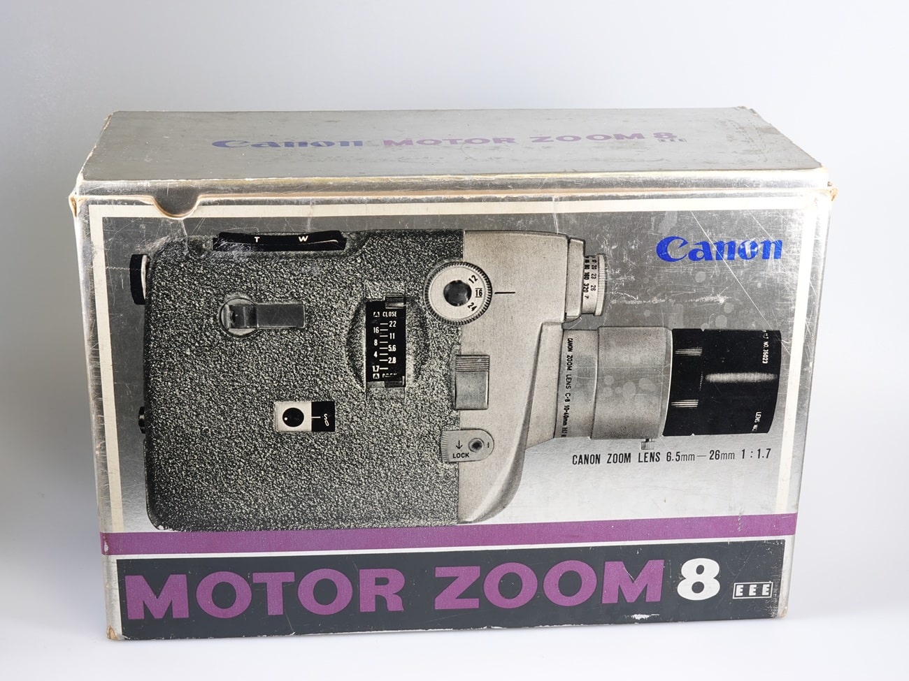 Schmalfilmkamera für Doppel-8-Spulen, hergestellt in Japan ab 1962. Objektiv: Canon Zoom Lens C-8 1:1,7/10-40 mm (12 Elemente), Seriennummer 272513; manuelle Fokussierung, Brennweitenverstellung manuell oder elektrisch. Reflexsucher mit Schnittbildentfernungsmesser; Okular justierbar. Elektrischer Filmtransport (Einzelbild; 12, 16 und 24 Bilder pro Sekunde). CdS-Belichtungsmessung (Messzelle oberhalb des Objektivs); automatische oder manuelle Belichtungssteuerung; Warnanzeige im Sucher bei Über- oder Unterbelichtung. Anschlüsse für Drahtauslöser, elektrischen Fernauslöser und Stativ (1/4″). Möglichkeit zur Überblendung.