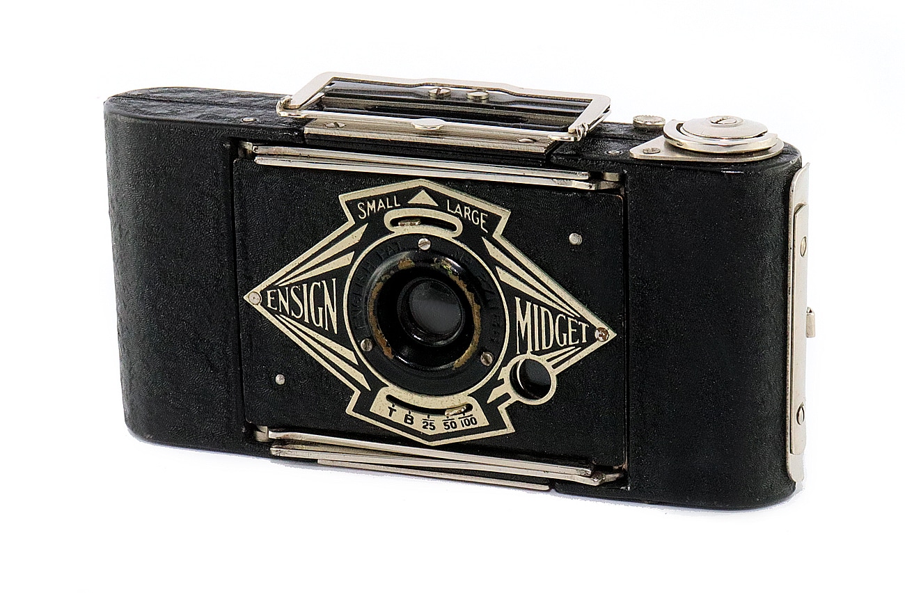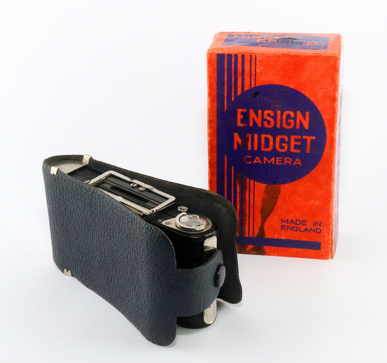 Es handelt sich um eine von mehreren Ensign-Miniaturkameras mit den Modellnummern 22, 33 und 55. Diese Nummern beziehen sich laut der britischen Seite Artdecocameras.com auf den damaligen Neupreis: also 22 Schilling, 33 Shilling und 55 Shilling. Das waren wohl im Jahr 1935 durchaus beträchtliche Summen. 33 Shilling entsprächen heute in etwa 100 Euro.
