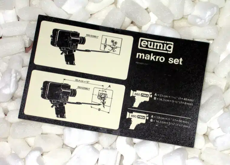Titelgerät für die Super-8-Kameras 860 und 880 PMA von Eumig, Österreich, 1970er Jahre. Wird per Adapterring am Objektiv der Filmkameras befestigt.