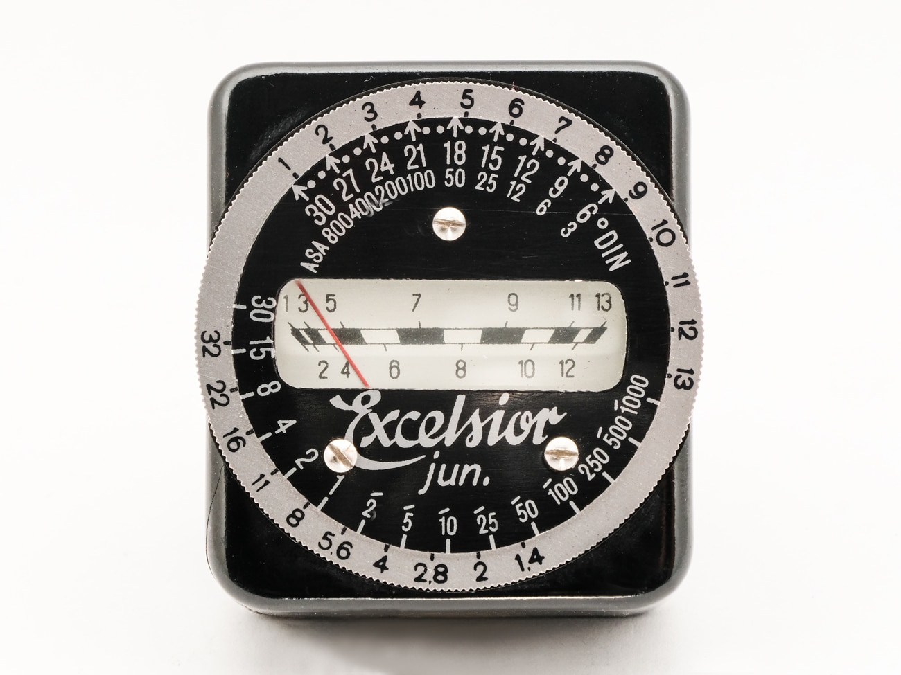Fotoelektrischer Belichtungsmesser mit Selen-Messzelle. Hersteller: Excelsior-Werk Rudolf Kiesewetter, Leipzig. Ab 1958 gebaut als Nachfolger der ersten Version des Excelsior Junior von 1954. Diese zweite Version hat einen Empfindlichkeitsbereich von DIN 6 bis 30/ASA 3 bis 800, einen Zeitenbereich von 30 Sekunden bis 1/1.000 Sekunde, Blendenwerte von 1,4 bis 32, Lichtwerte von 1 bis 13. Der an der Zeigerskala abgelesene Lichtwert wird per Einstellrad der vorliegenden Filmempfindlichkeit (obere Skala) gegenüber gestellt, die passenden Zeit-Blenden-Kombinationen können danach an der unteren Skala direkt abgelesen werden. Die Selenzelle erzeugt eine der Helligkeit entsprechende elektrische Spannung, die zur Ansteuerung des Zeigerinstruments verwendet wird, eine zusätzliche Stromquelle ist nicht erforderlich.