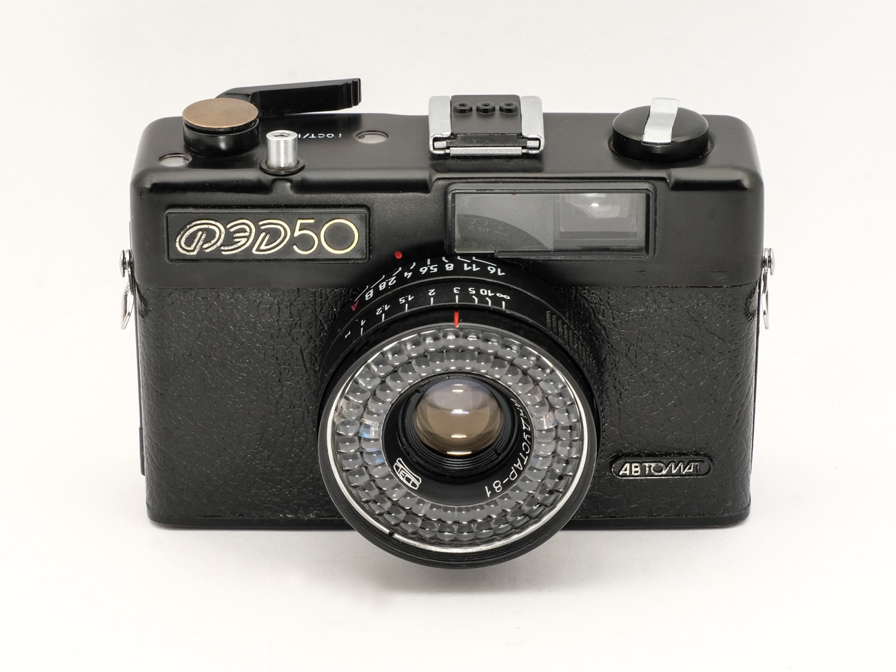 Sucherkamera für den Kleinbildfilm 135 (Aufnahmeformat 24 x 36 mm), gebaut von 1986 bis 1996 bei FED (F. E. Dscherschinski-Werke), Charkow, damals UdSSR, später Ukraine. Objektiv: Industar-81 1:2,8/38 mm, vollautomatische Belichtung. Im Sucher ist eine Skala mit Zeit-Blenden-Kombinationen eingeblendet: 2,8 mit 1/30 Sekunde bis 16 mit 1/650 Sekunde, die automatisch eingestellte Kombination wird per Zeiger angegeben. Im alternativen manuellen Betrieb kann die Blende gewählt werden, wobei die Belichtungszeit mit konstant 1/30 Sekunde vorgegeben ist. Dies ist gleichzeitig die Blitzeinstellung, der Zubehörschuh ist mit einem Mittenkontakt ausgestattet. Die ringförmige Wabenscheibe um die Frontlinse des Objektivs ist der Lichteintritt für den Selen-Belichtungsmesser, eine zusätzliche Stromquelle ist nicht erforderlich. Das Einstellfenster für die Empfindlichkeiten ist bezeichnet mit GOST/ISO, wegen der nur geringfügigen Unterschiede wird jeweils nur ein Wert angegeben, die Skala reicht von 16 bis 400. Die Fokussierung erfolgt manuell, zusätzlich zu der Entfernungsskala am Objektiv markiert ein Zeiger im Sucher das passende von fünf Symbolen (Porträt bis Landschaft), ein Leuchtrahmen mit Parallaxmarken wird ebenfalls eingeblendet.