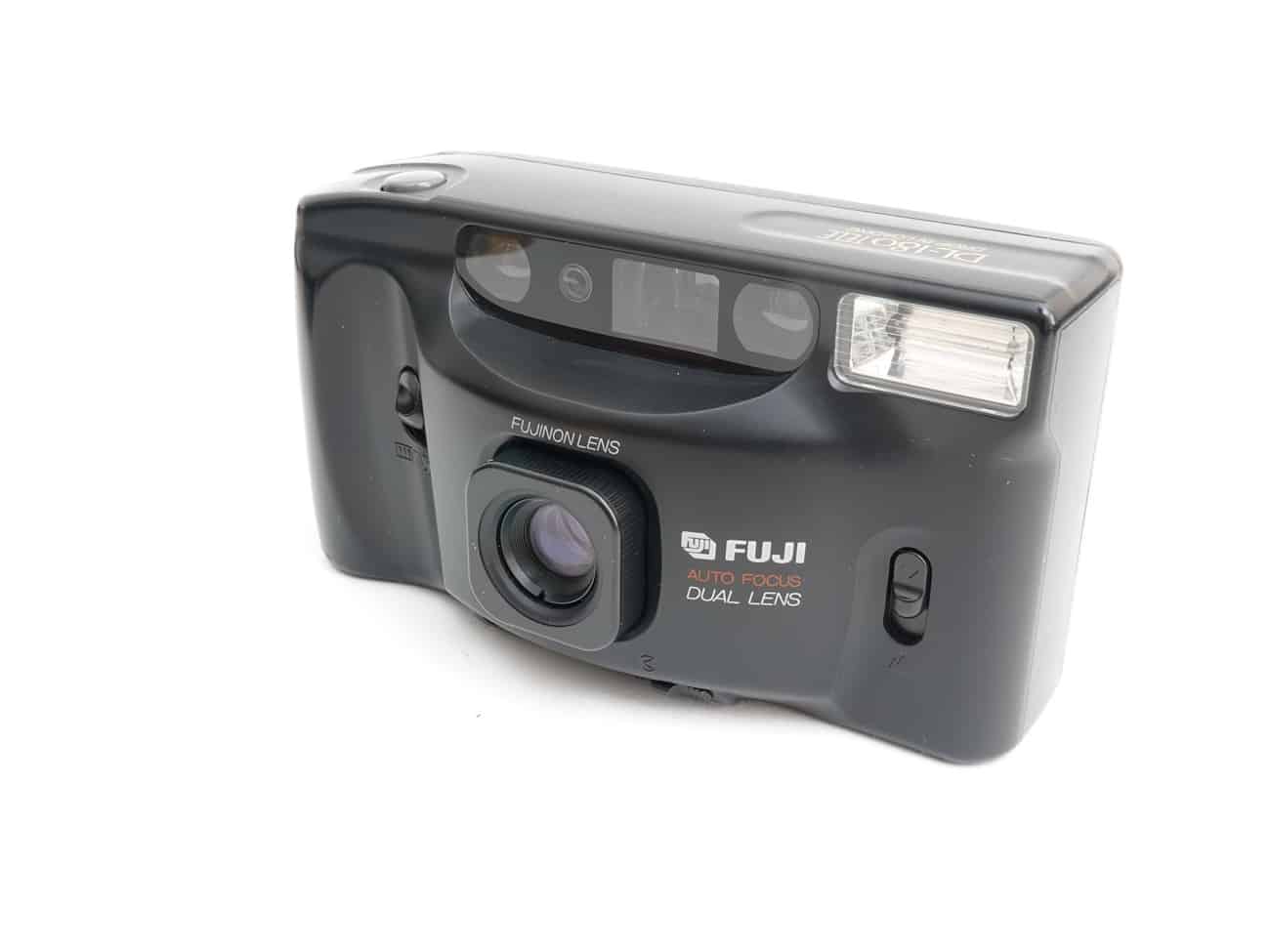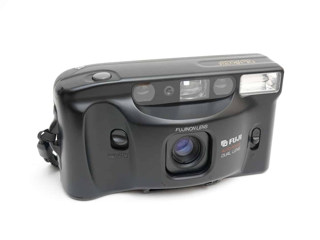 Analoge Kompaktkamera für den Kleinbildfilm 135 (Aufnahmeformat 24 x 36 mm), hergestellt in Japan in den späten 1980er Jahren. Objektiv: Fujinon Lens; Autofokus. Die Beschriftung „Dual Lens“ bezeichnet die Möglichkeit, mit zwei verschiedenen Brennweiten zu fotografieren: 1:6,4/35 mm im Normalbetrieb und 1:9,8/55 mm als zuschaltbare Tele-Einstellung; die Zuschaltung des Telemodus erfolgt über einen Schalter auf der Vorderseite der Kamera (vom Benutzer aus gesehen rechts). Durch einen gegenüberliegenden Schalter kann die Entfernungseinstellung auf „unendlich“ fixiert werden. Leuchtrahmensucher; im Telemodus wird eine vergrößernde Linse eingeschoben. Elektronisch gesteuerter Zentralverschluss (1/8 bis 1/300 Sekunde); automatische Belichtungssteuerung durch Veränderung der Belichtungszeit. Integrierter Elektronenblitz mit automatischer Zuschaltung. Komplett motorischer Filmtransport. Kunststoffgehäuse; der Schieber für den Objektivschutz ist zugleich der Ein-/Ausschalter. Stromversorgung: 2 x Batterien 1,5 Volt (AA). Kein Stativanschluss; Handschlaufe.