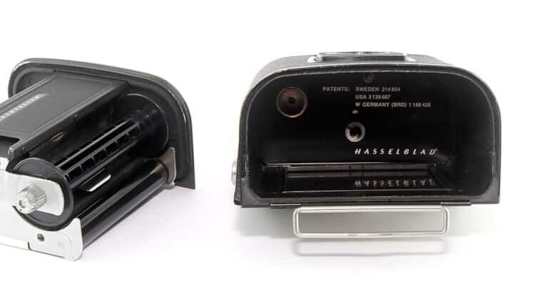 Hasselblad-Magazin mit dem Bildformat 6 x 6 cm für den Rollfilmtyp 220 mit 24 Bilder pro Filmrolle. Für alle Hasselblad-Kameramodelle, einschließlich ArcBody und F1exBody. Bei Verwendung an den Kameras 202 FA, 203 FE und 205 FCC muss die Filmempfindlichkeit im PR-Modus der Kamera manuell programmiert werden.