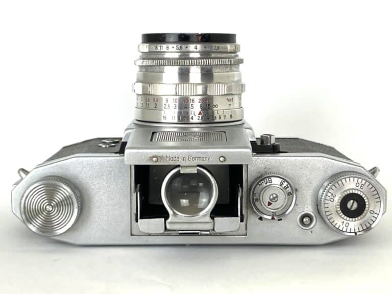 Vor Einführung dieser Modellreihe ließen sich viele Kunden mit hohem Kostenaufwand einen solchen Blitzanschluss nachrüsten. Es gab die FX-Modellreihe serienmäßig mit unterschiedlichen Blitzanschlussbuchsen. Mit gleich zwei Koaxialbuchsen wie hier ist nur etwa ein Viertel der etwa 95.000 Praktica FX ausgestattet worden. 1955 hatte das letzte Modell der FX nur noch eine X-Buchse.