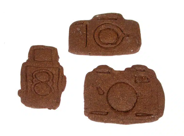 Ein pfiffiges Geschenk für Fotografen, die schon alles haben: Keksformen zum Erstellen von Kamera-Keksen. Das funktioniert wie beim Ausstechen und Backen von Weihnachtsplätzchen. Den Teig kann man noch mit Lebensmittelfarbe verschönern oder mit Schokostreusel veredeln. Das Set kostete 2014 rund 20 Euro zuzüglich Porto.