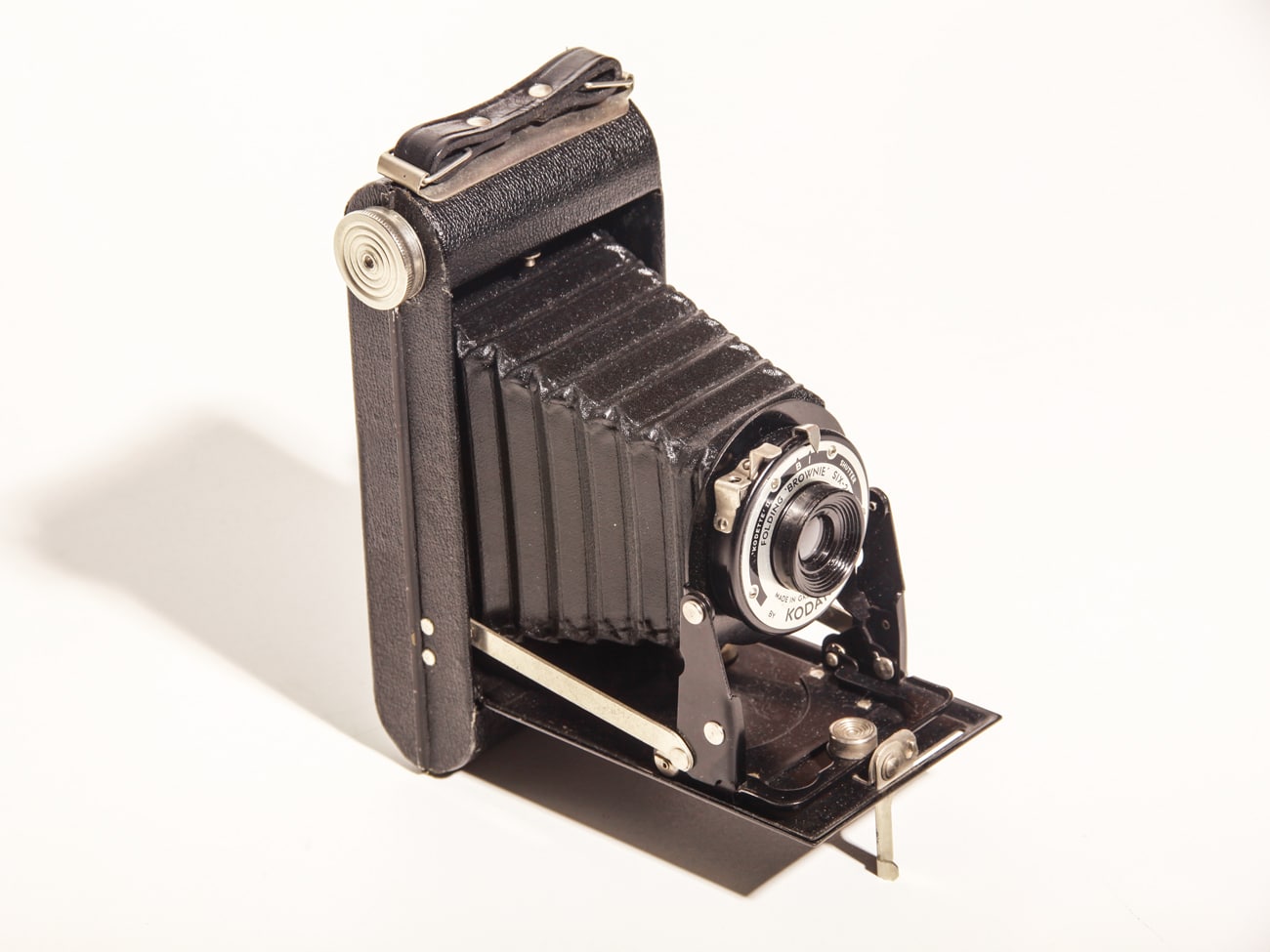 Kamera für Rollfilm 620, Format 6 x 9 cm, produziert bei Kodak, London, Großbritannien, von 1937 bis 1940. Das Objektiv besteht aus einer Meniskuslinse (Fixfokus). Der Kodette-II-Verschluss erlaubt auch Langzeitaufnahmen (B). Neben dem Auslösehebel ist ein Drahtauslöseranschluss angeordnet.