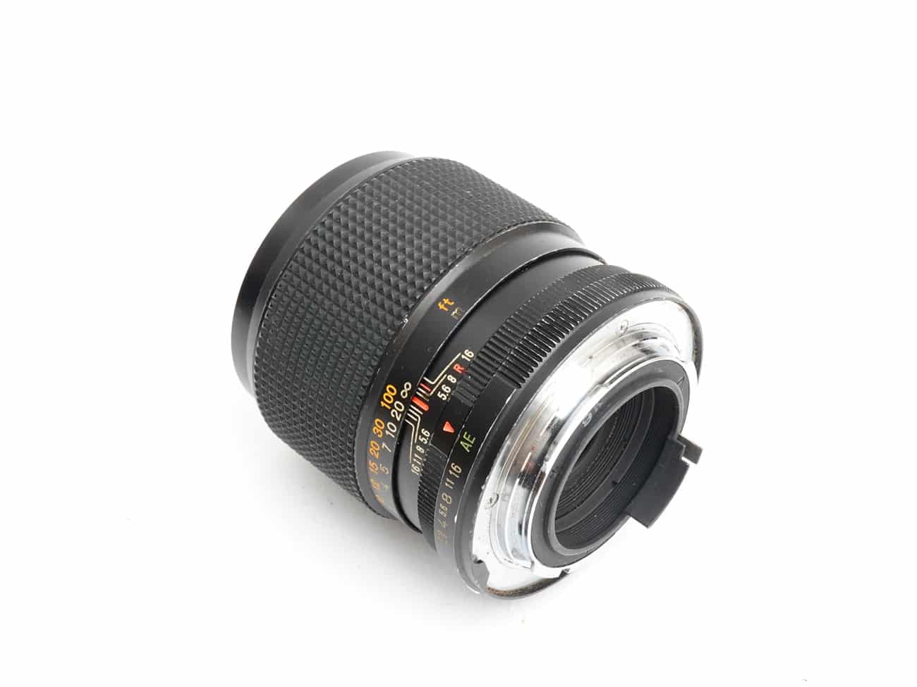 Leichtes Konica-Teleobjektiv für Spiegelreflexkameras im Kleinbildformat, mit Bajonettanschluss; manuelle Fokussierung. Filtergewinde 55 mm. Im Museum mit dem originalen Objektivdeckel aus Leichtmetall.