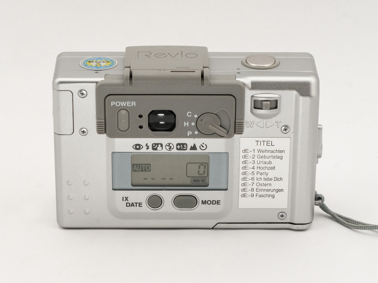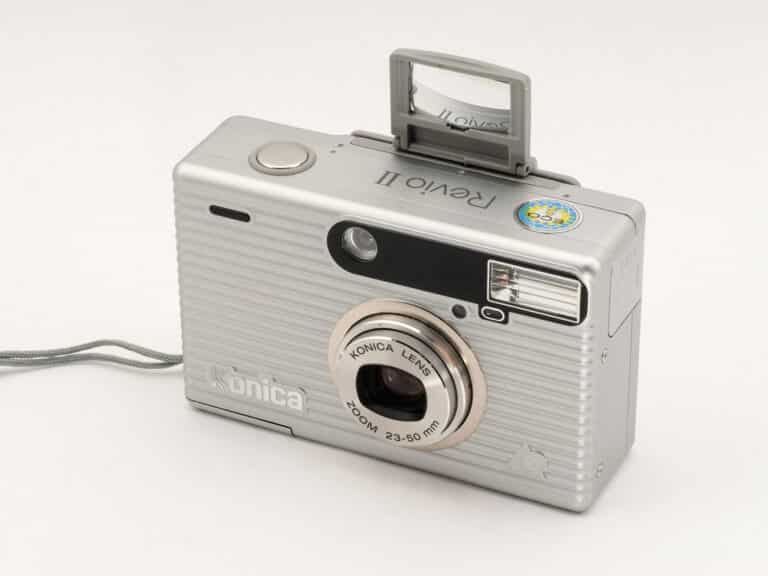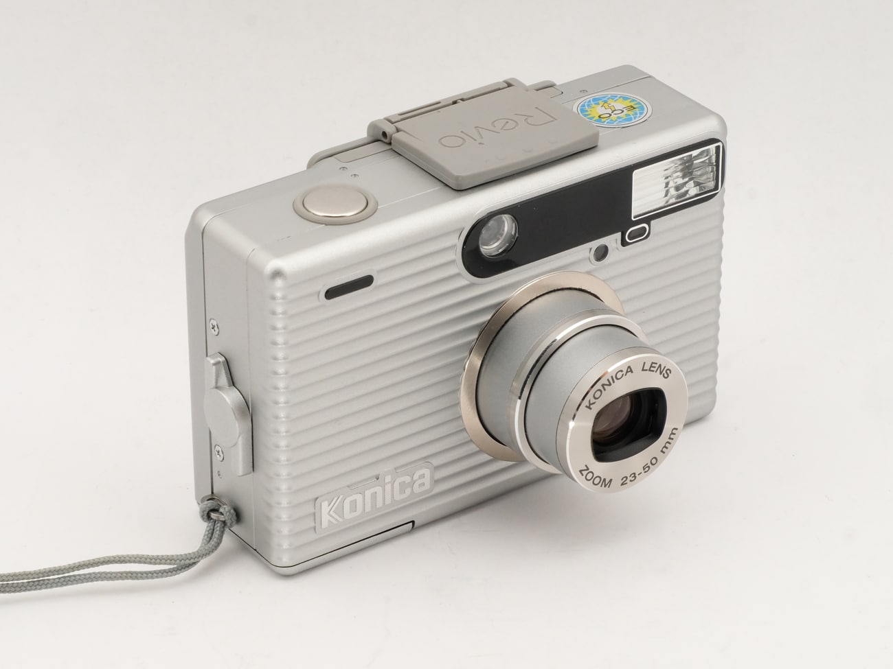 Sucherkamera (1990er Jahre) im „Wellblechlook“, für den APS-Film (Aufnahmeformat: 16,7 x 30,2 mm). Eine Besonderheit ist die Selbstportrait-Funktion: Ein an der Kamerarückseite auf dem Sucherrahmen aufsteckbarer Spiegel kann, nach oben geklappt, von vorne zum „Anpeilen“ eingesehen werden. Elektronisch gesteuerter Programmverschluss mit Verschlusszeiten von 1 Sekunde bis 1/500 Sekunde. Eingebauter Winder. Objektiv: Konica Zoom 1:3,9-7,9/23-50 mm. Schärfeeinstellung: Multi-Infrarot-Autofokus-System, Entfernungsbereich von 0,4 Meter bis unendlich. Automatische Einstellung der Filmempfindlichkeit. Echtbild-Zoomsucher mit Autofokus-Rahmen und Parallaxen-Ausgleichsmarkierung (nur für Formate C und H). Blitzbereich des eingebauten Blitzgeräts von 0,5 bis 8,4 Meter bei 23 mm Brennweite und ISO 400/27°. Selbstauslöser, Datenrückwand mit 9 verschiedenen einkopierbaren Texten. Stromversorgung: 1 x 3-Volt-Lithium-Batterie (CR 25).
