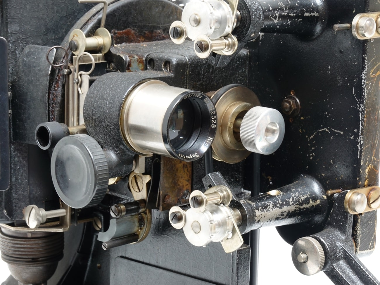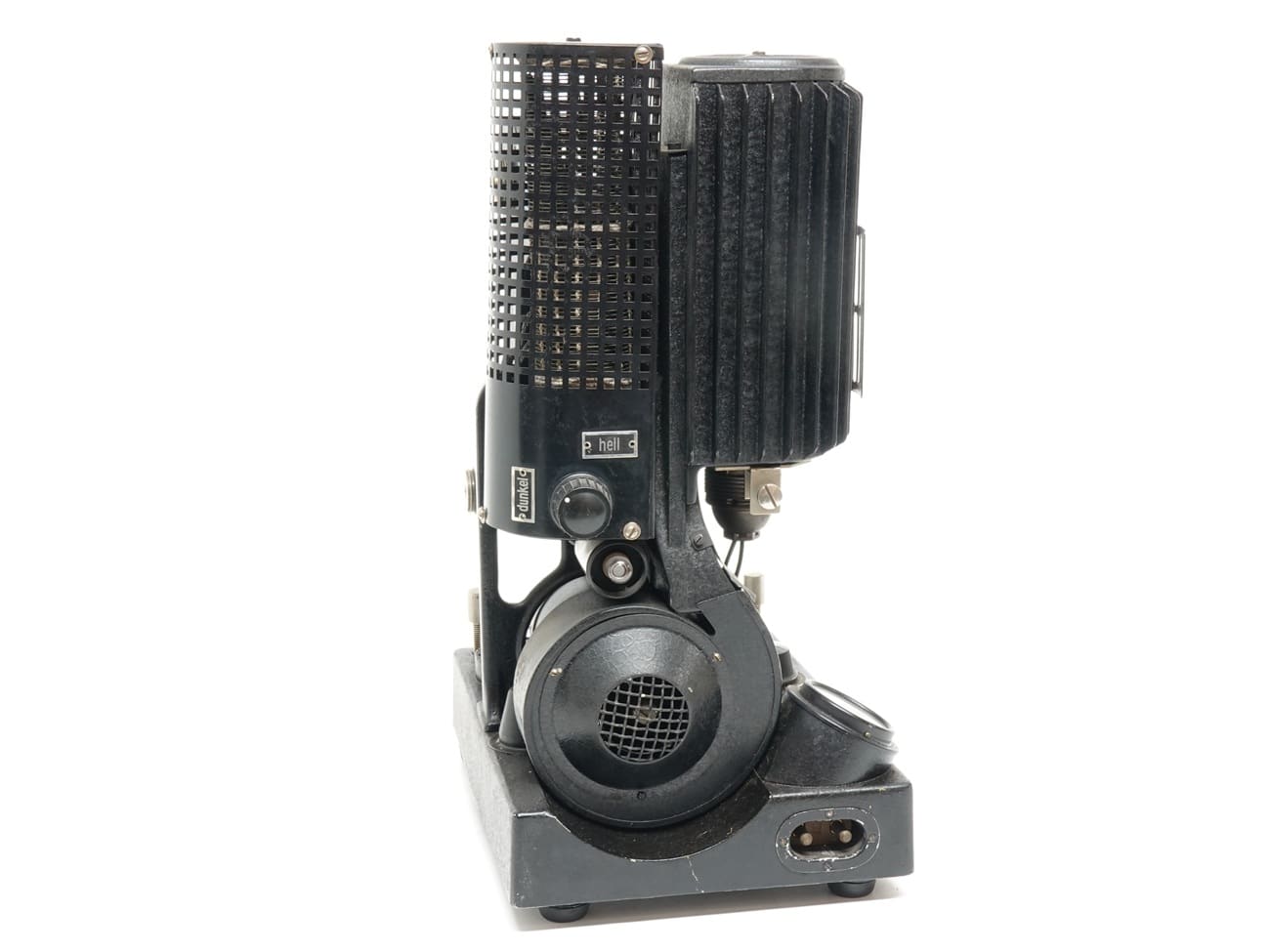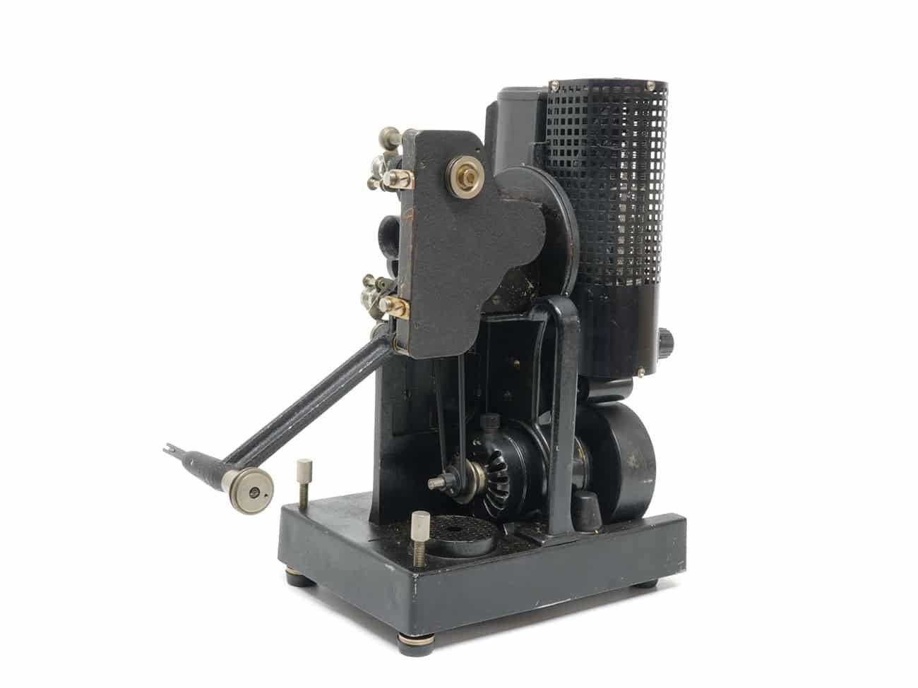 16-mm-Filmprojektor, 1935, von Lytax, Freiburg im Breisgau. Objektiv: Meyer Görlitz Kinon Superior 5 cm, Seriennummer 162528. Elektrischer Filmtransport mit 16 Bildern pro Sekunde. Maximale Filmlänge: 120 Meter. Am Museumsexemplar fehlt der obere Spulenarm.