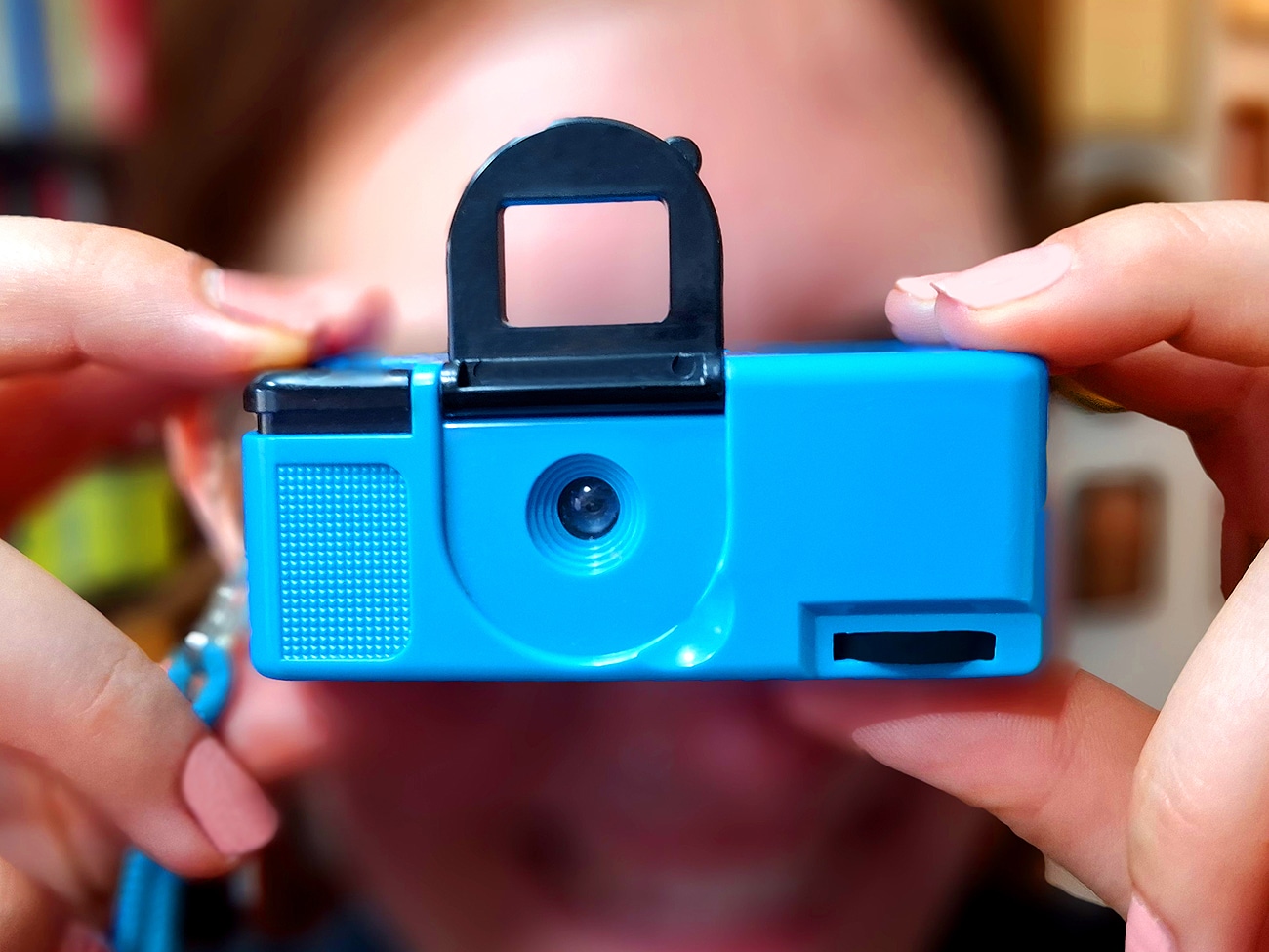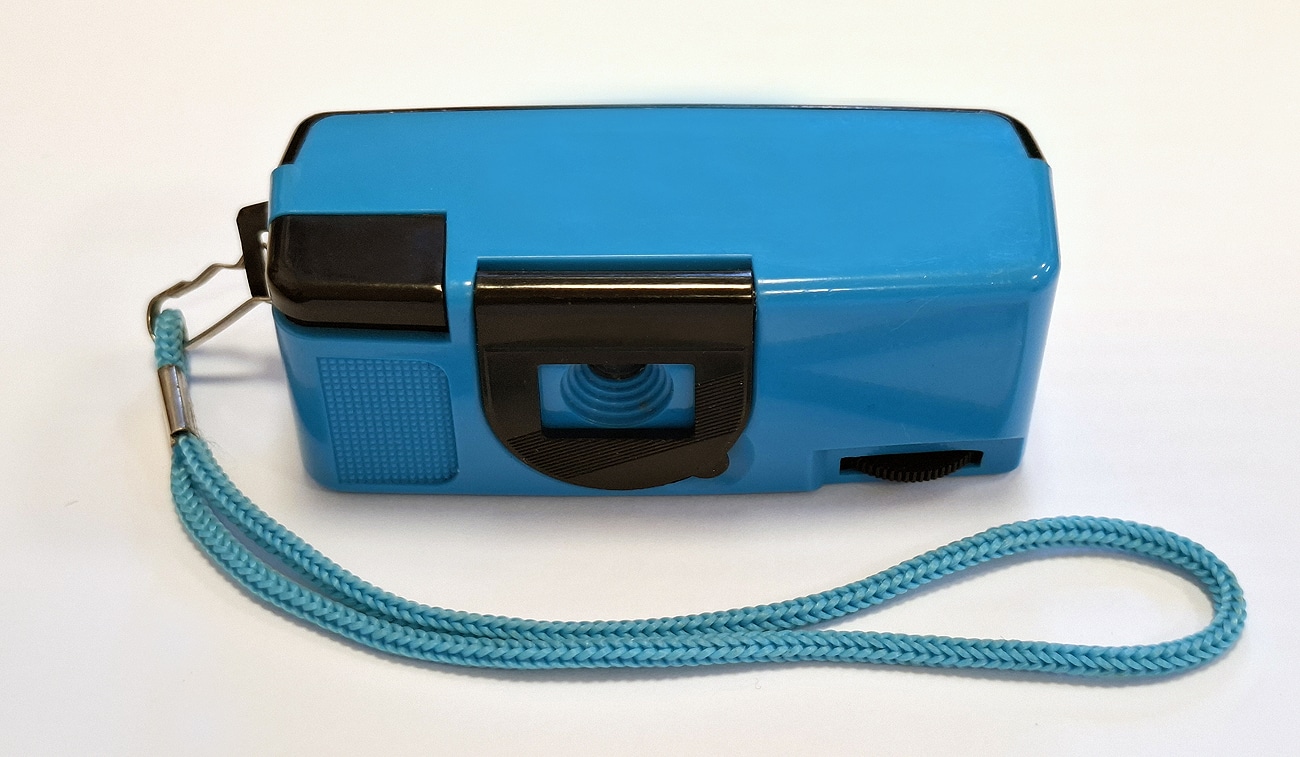 Eine Variation der 110er-Film-Minis, gerade mal 9 cm lang. Diese „Kamera“ aus China gab’s teilweise als Werbegeschenk. Anfang 1990er Jahre. Technische Daten: Objektiv ohne Bezeichnung; Fixfokus. Aufklappbarer Rahmensucher. Einfachverschluss; manuelle Belichtungssteuerung. Manueller Filmtransport mittels Rändelrad auf der Vorderseite. Trageschlaufe in Kamerafarbe (blau).