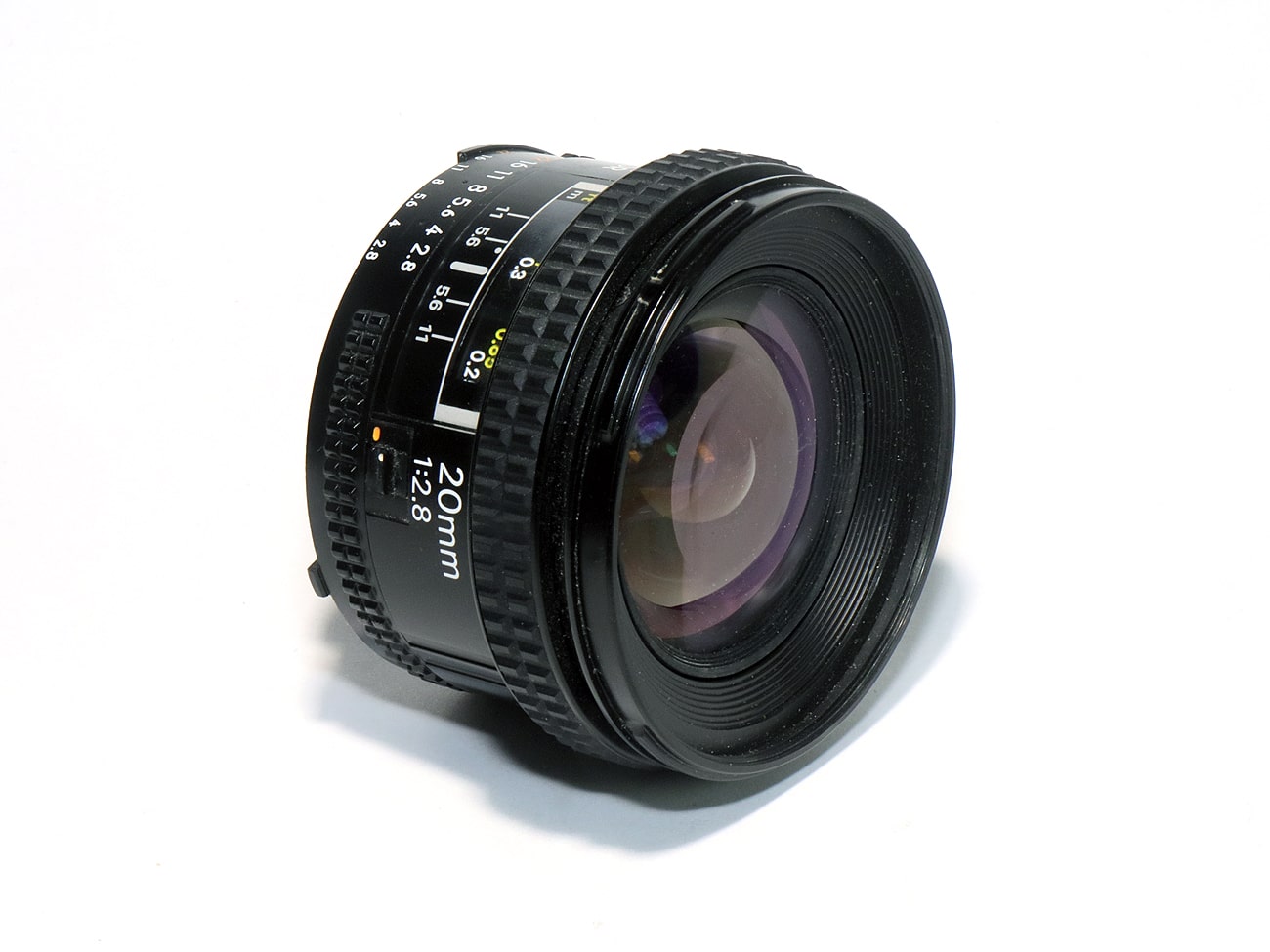 Lichtstarkes Autofokus-Weitwinkelobjektiv für Nikon AF-Kameras ohne 3D-Matrixmessung für das Kleinbildformat mit der Lichtstärke 1:2,8/20 mm. Kleinste Blende: 22, Bildwinkel: 61,9° (kurze Seite), 84° (lange Seite) und 94,5° (Diagonale). 12 Elemente in 9 Gruppen; Filter: 62 mm. Abmessungen: 69 mm Durchmesser, 52 mm Länge. Gewicht: 260 Gramm. Gebaut von 1989 bis 1994.