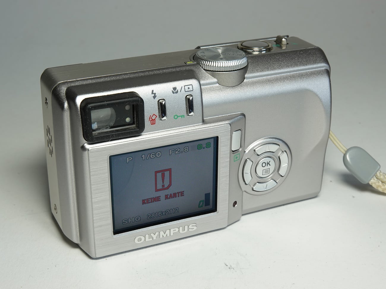 Digitale Kompaktkamera, hergestellt in China ab 2004. 1/1,76 Zoll CCD-Chip, 6.370.000 Pixel brutto). Objektiv: Olympus Lens AF Zoom 1:2,8-4,8/7,8-23,4 mm (38 bis 114 mm Kleinbildäquivalent); 7 Elemente in 6 Gruppen); doppelter Autofokus (Kontrastvergleichssystem, passives Autofokus-System). Optischer Realbildsucher und Farb-LCD-Monitor. Mechanischer Verschluss (1 bis 1/1.000 Sekunde; M-Modus: 8 Sekunden bis 1/1.000 Sekunde; Movie: 1/30 bis 1/8.000 Sekunde); automatische Belichtungssteuerung. Mittenbetonte Integralmessung oder Spotmessung; mit Handschlaufe.