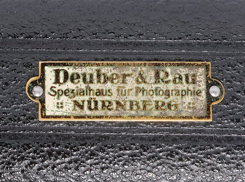 Die Kamera wurde ursprünglich ausweislich des aufgenagelten Firmenlogos vom Nürnberger „Spezialhaus für Photographie“ Deuber & Rau verkauft, also gerade mal 35 Kilometer Luftlinie vom Plecher Museum entfernt.