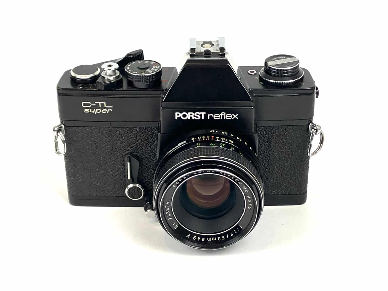 Foto Porst bot die japanische Cosina Hi Lite 405 Mitte der 1970er Jahre unter eigener Hausmarke in schwarzem Metallgehäuse als hier vorgestellte Porst Color Reflex C-TL super an. Sie ist eine einäugige Spiegelreflexkamera (SLR) für den Kleinbildfilm 135 (Aufnahmeformat 24 x 36 mm), hergestellt in Japan ab 1975. Anschließbar sind Wechselobjektive mit M-42-Gewinde, hier ein Porst Color Reflex MC Auto 1:1,7/50 mm aus Japan mit manueller Fokussierung. Der Prismensucher hat ein Mikroraster-Messfeld und einen Mattscheibenring. Der mechanische Schlitzverschluss (Metall-Lamellen) bietet Verschlusszeiten von 1 bis 1/1.000 Sekunde plus B, ein Selbstauslöser ist vorhanden. Die Lichtmessung erfolgt durch das Objektiv (TTL) mit Verschlussgeschwindigkeit und Blende gekuppelt; es gibt zwei TTL-Belichtungsmesssysteme: Ganzfeld (Integral) und Punktmessung (Spot). Die Kamera hat einen Zubehörschuh mit Mittenkontakt sowie Blitzbuchsen seitlich (M und X). X-Synchronisation bis 1/125 Sekunde. Mit dem abgebildeten Objektiv wiegt sie 950 Gramm.