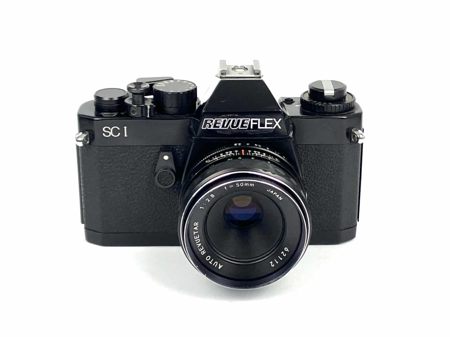 Die Revue Revueflex SC I ist eine einäugige Spiegelreflexkamera für Kleinbildfilm (24 x 36 mm), die konstruktiv der japanischen Chinon CM-3 entspricht. Sie wurde von Foto Quelle ab 1978 unter der Eigenmarke Revue vertrieben. Die Revuelflex SC I bietet Verschlusszeiten von 1 bis 1/1.000 Sekunde plus B, die Belichtungsmessung erfolgt bei Arbeitsblende durch die Linse (TTL). Der Verschluss ist ein Schlitzverschluss mit Metall-Lamellen. Neben einem Selbstauslöser und automatischer Blendensteuerung hat die Kamera eine Belichtungsanzeige mit drei LEDs im Sucher. Ein Schnittbildindikator erleichtert die Fokussierung. Der Blitzschuh ist mit einem Mittenkontakt ausgestattet, der Auslöser kann mit einem stabilen, aus Metall gefertigten Hebel verriegelt werden. Mit dem Anschlussgewinde M 42 sind eine Vielzahl von manuell fokussierbaren Objektiven anschließbar, hier ebenfalls ein Hausmarken-Objektiv von Foto Quelle, das Standardobjektiv Auto Revuetar 1:2,8/50 mm (Tessar-Linsenkonstruktion), Seriennummer 62112. Die Kamera wiegt mit Objektiv 780 Gramm.