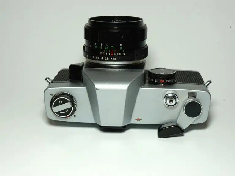 Einäugige Spiegelreflexkamera (SLR) für den Kleinbildfilm 135 (Aufnahmeformat 24 x 36 mm), hergestellt für Foto Quelle ab 1972 von Cosina oder Chinon in Japan. Die Kamera gab es wahlweise auch mit einem Olympia-Emblem von 1972 München links vom Selbstauslöser. Für Wechselobjektive mit M-42-Schraubanschluss, hier mit Auto Revuenon 1:1,8/50 mm; manuelle Fokussierung. Metallschlitzverschluss (B, 1 bis 1/1.000 Sekunde), X- und M-Synchronisation bis 1/125 Sekunde. Lichtmessung durch das Objektiv (TTL); Belichtungsmesser-Einstellbereich von 15 bis 33 DIN. Scharfeinstellung über den Prismensucher mit Mikrorasterfeld. Schnellschalthebel, eingebauter Selbstauslöser, Filmladekontrolle, automatisches Bildzählwerk. Im Museum mit der exakt zugeschnittenen originalen Bereitschaftstasche.