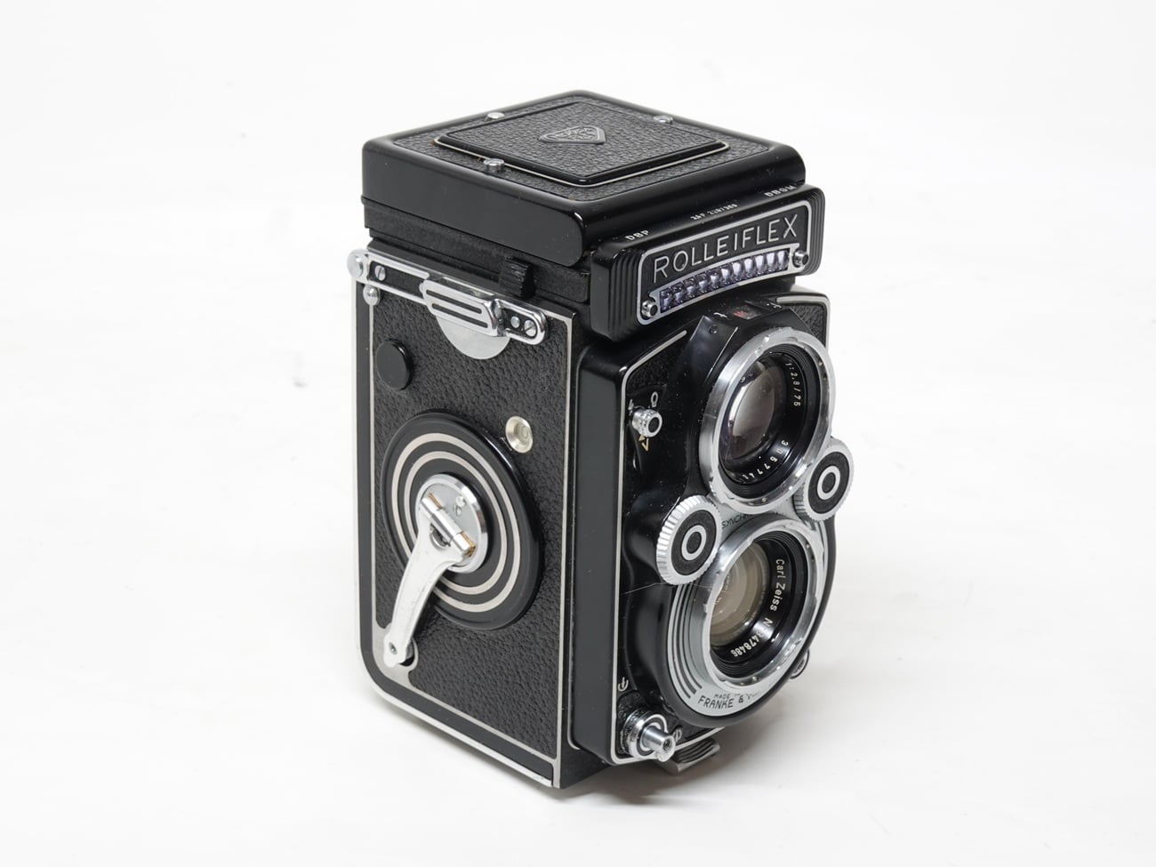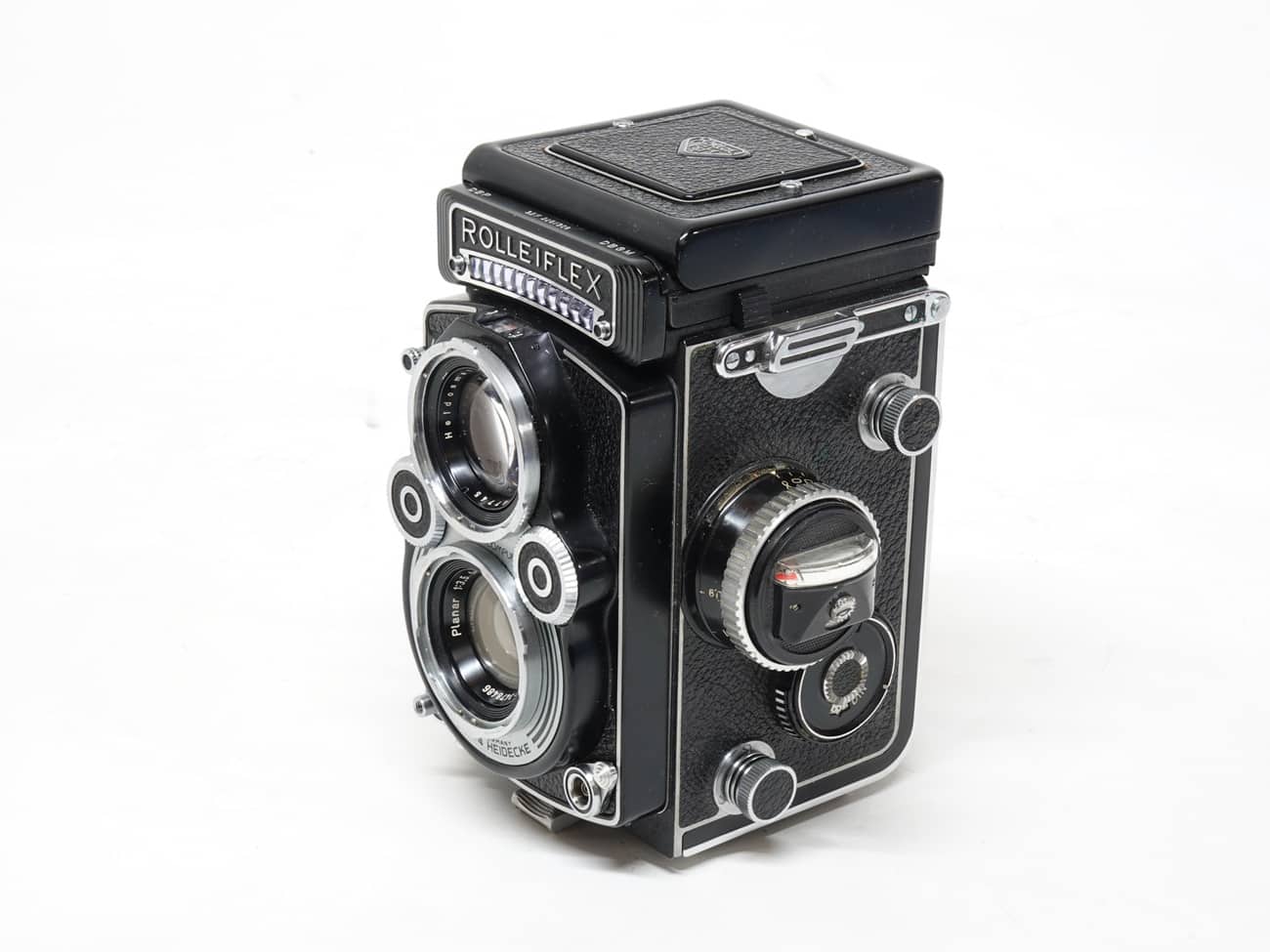 Zweiäugige Spiegelreflexkamera (TLR) für den Rollfilm 120 (Aufnahmeformat 6 x 6 cm), gemäß Seriennummer (2267308) hergestellt in Westdeutschland zwischen 1960 und 1965. Aufnahmeobjektiv: Carl Zeiss Planar 1:3,5/75 mm, Nummer 3478486; Sucherobjektiv: Heidosmat 1:2,8/75 mm, Nummer 3057745; manuelle Fokussierung. Lichtschachtsucher mit Mattscheibe, Fresnellinse, einschwenkbarer Lupe und automatischem Parallaxenausgleich; zugleich als Rahmensucher nutzbar. Verschluss: Synchro-Compur (B, 1 bis 1/500 Sekunde); manuelle Belichtungssteuerung; eingebauter, gekuppelter Belichtungsmesser mit Selenzelle. Anschlüsse für Blitzsynchronkabel, Drahtauslöser und Stativ.