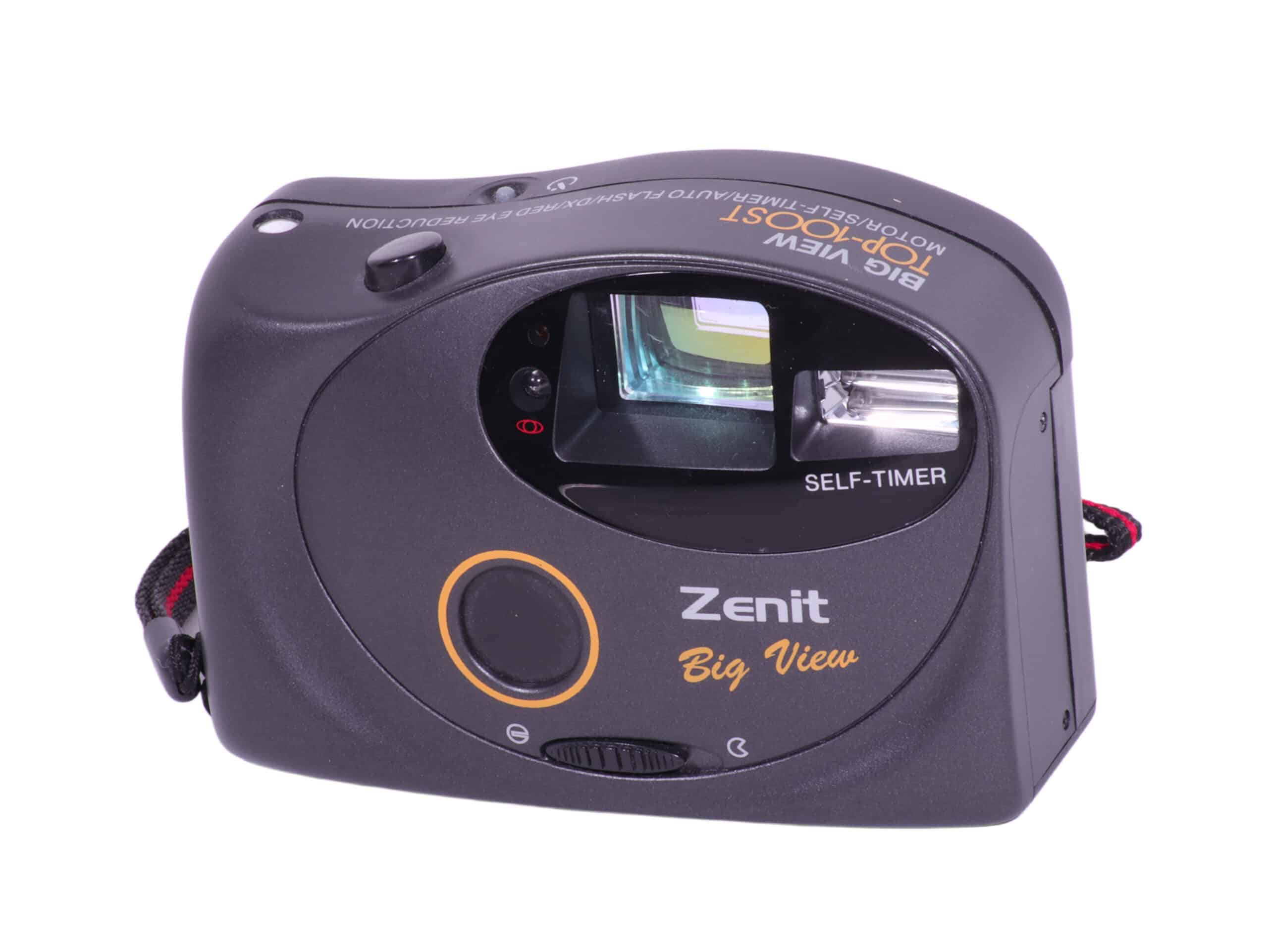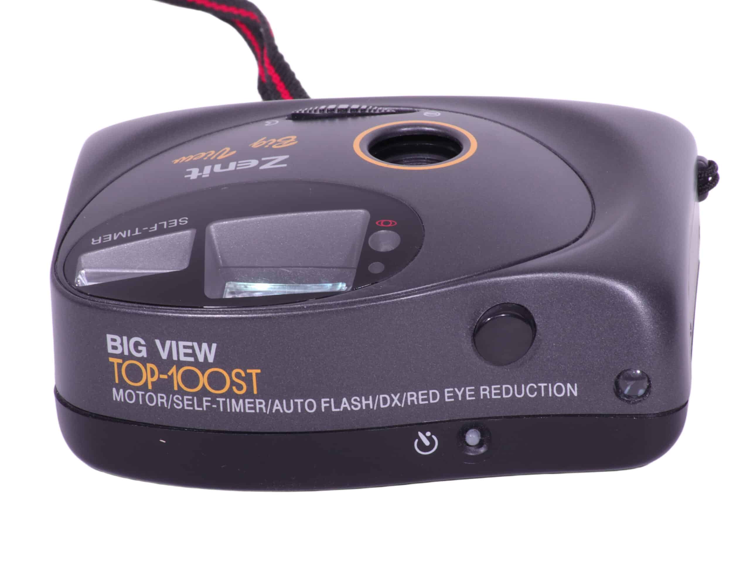 Die Zenit Big View Top 100st ist eine kompakte Sucherkamera für 35-mm-Film, die sich durch eine einfache Bedienung und ein auf Schnappschussfotografie ausgelegtes Konzept auszeichnet. Sie verfügt über ein Fixfokus-Objektiv sowie einen integrierten Blitz und richtet sich vor allem an Einsteiger und Gelegenheitsfotografen.