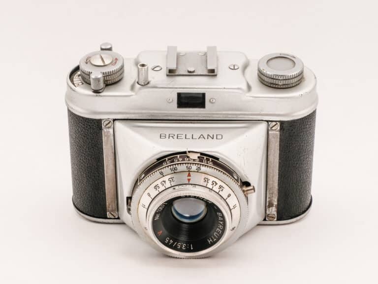 Sucherkamera (1956 bis 1957) für den Kleinbildfilm 135 (Aufnahmeformat 24 x 36 mm). Manuelle Fokussierung, mechanischer Zentralverschluss Synchro Compur (T,
