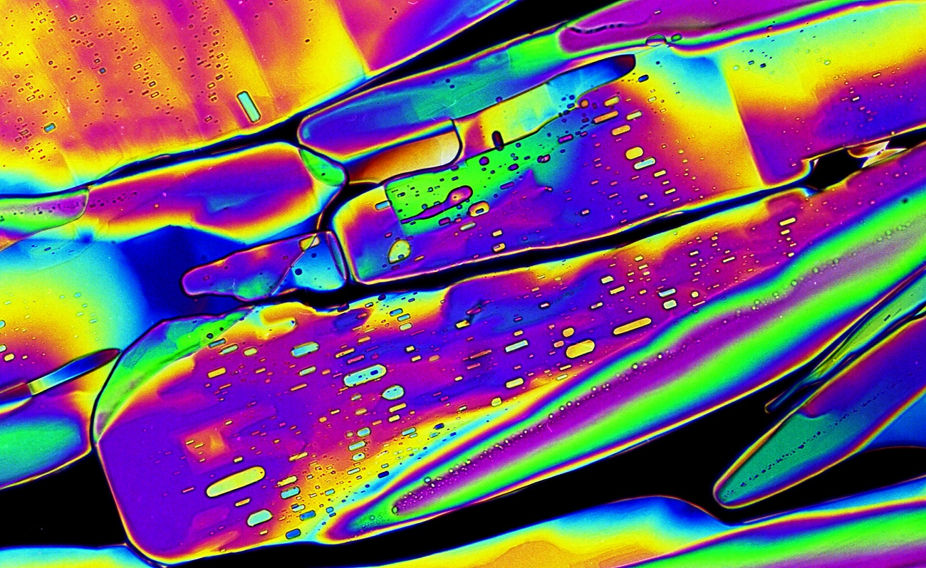 Fast schon surreale Kunst: Weinstein-Kristalle in polarisiertem Licht unter dem Mikroskop. Bild: Richard Jähner.