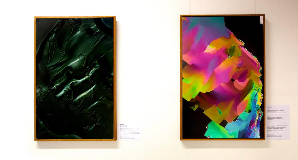 Bei den farbenfrohen Mikrofotografien in der Plecher Museums-Galerie finden sich entsprechende Erläuterungen, damit die besondere Technik nachvollziehbar wird. Bild: Thomas Wanka